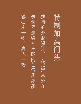 | 秉承中國“藏風(fēng)聚福”的傳統(tǒng)理念,研發(fā)出特殊的設(shè)計(jì)工藝,無需更改門洞尺寸,加高門框處理,添財(cái)納吉祥、五福入豪門 |